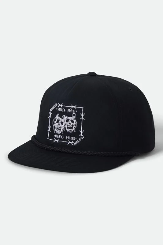 A classic snapback with embroidery on the front Smile Now Smile Later.