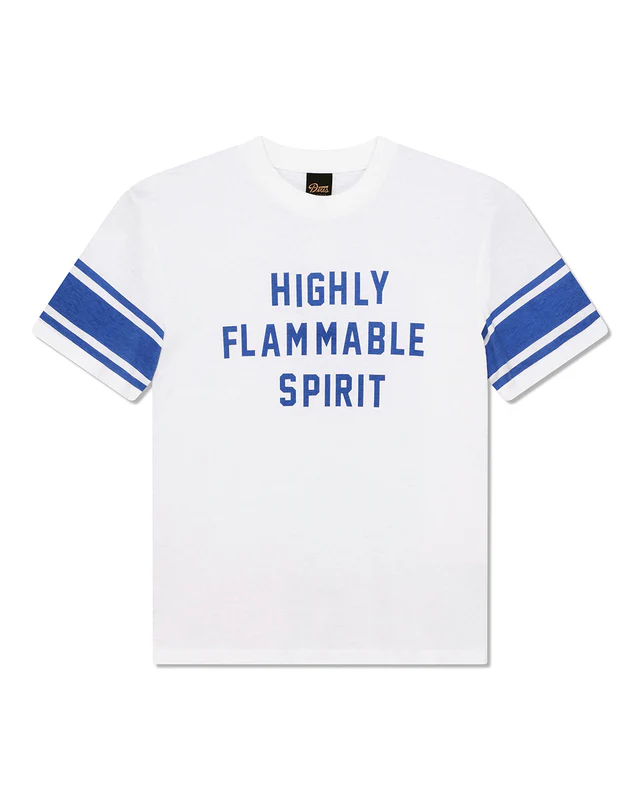 The box fit Flammable Tee wraps team‐spirit graphics in broken‐in comfort.