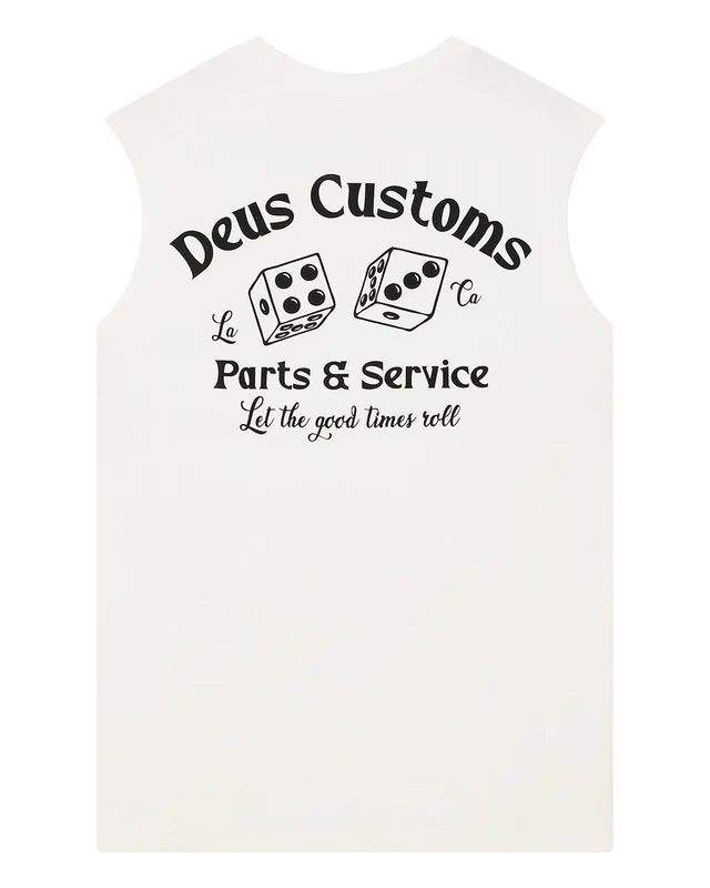 A classic sleeveless muscle top made from 100% cotton with dice printed on the back.