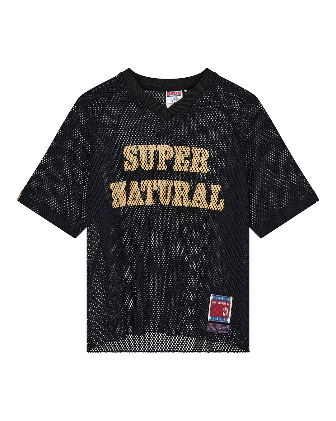 This oversized fit moto jersey with short sleeves is completely made out of a mesh polyester fabrication, with a lettering print on the chest.