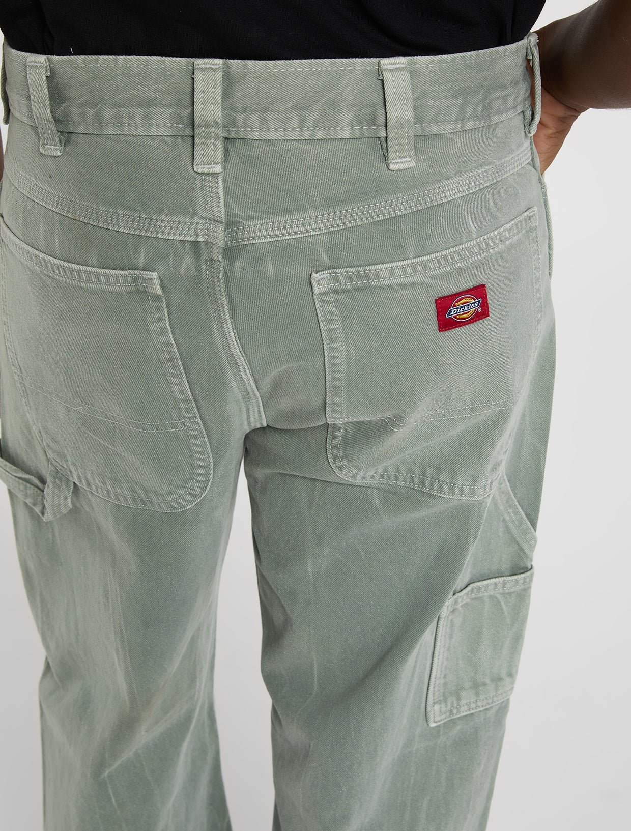 This denim has a unique acid wash and contrasting woven red Dickies label on the back pocket.