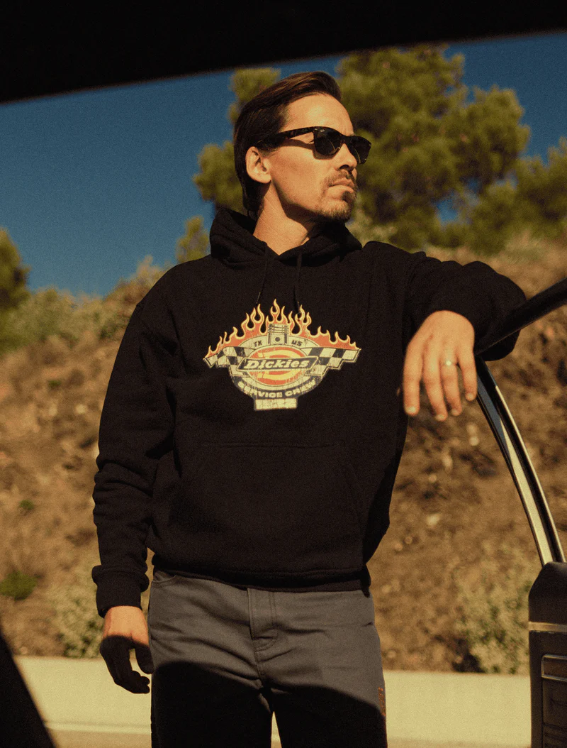 The Dickies Nashport pullover hoodie brings vintage racer vibes to modern times with a robust design perfect for daily use.