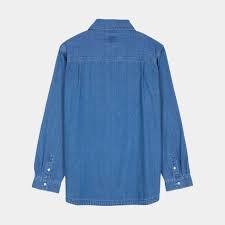 80% cotton, 20% viscose, 6oz denim chambray, longsleeve shirt, button up with twin patch pockets, curved hem and pocket embroidery